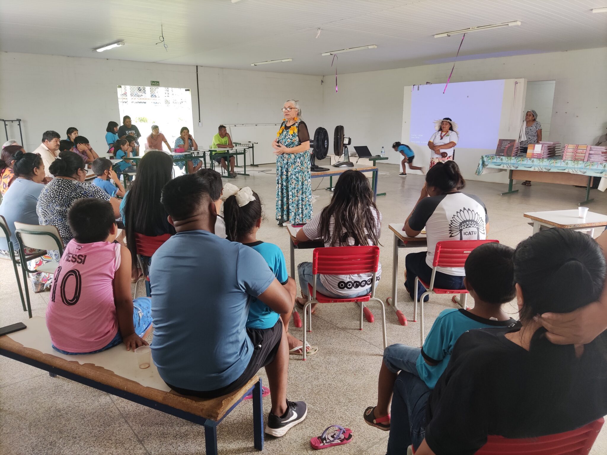 Oficina incluiu a divulgação da cultura Kaingáng a partir da distribuição de livros que são resultado de mais de uma década de pesquisa e registro